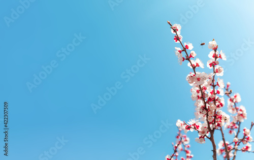 Spring blossom background with cherry flower and bee