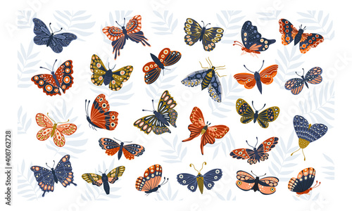 Spring collection of butterflies. Decoration print for surface pattern