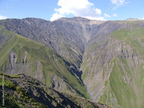 Spring is here on the mountain tops. Grass is starting to sprout. Mountains, pastures, steep cliffs and rocky terrain are in harmony.