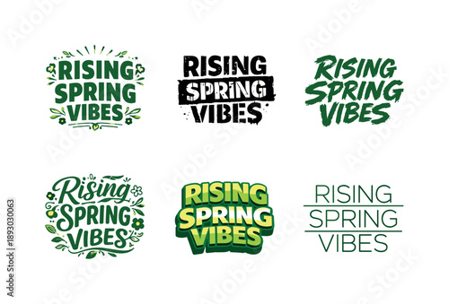 Spring Lettering Diversity. Rising Spring Vibes Lettering. Set lettering. harmonious lettering variations of the same emblematic concept, each with different