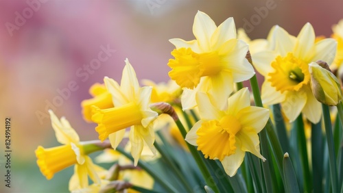 Spring Radiance Close-up Background of Yellow Daffodil Flowers