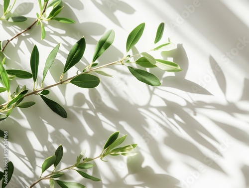 Spring, summer wedding, birthday stationery, empty wall mockup with mint green olive tree branch