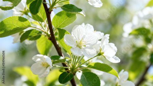 Spring White Pear Flower & Green Leaf Macro Natural Photography