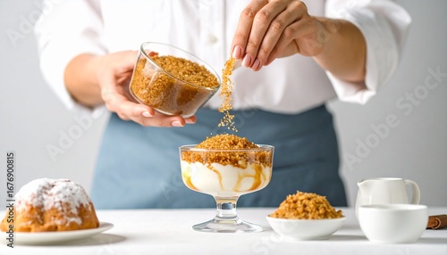 Sprinkling Brown Sugar On A Vanilla Dessert