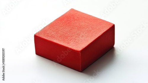 Square high-priority red stamp resting on a pristine white surface, highlighting its solid color and clean lines. Ideal for emphasizing urgency in documents.