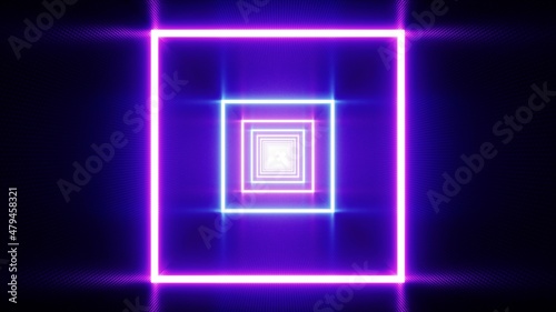 Square Neon Flicker Lights VJ Background 3D Rendering