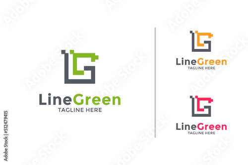 Square Pixel line logo design concept. Technology logo design vector template