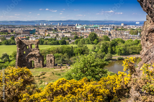St. Anthony's Chapel ruins with Edinburgh in the back, Scotland