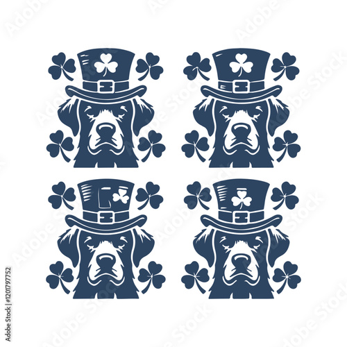 St. Patrick's Day Dog with Clover Hat Vector Silhouette Set Design Illustration