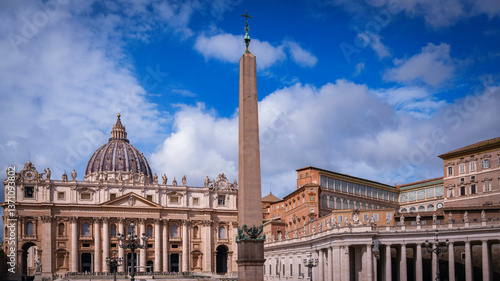 St. Peter's Basilica and the central obelisk in St. Peter's Square, Rome, Italy—iconic symbols of faith, history, and architectural magnificence.