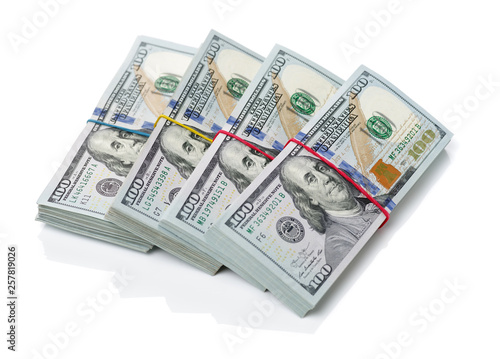 Stack of $100 bills on white background