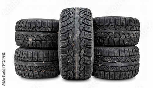 tire, car, black, rubber, stack, tread, pattern, groove, marking, automotive, vehicle, transportation, maintenance, safety, performance, clean, idled, lightly, used, product, design, detail, perspective, composition, striking, visual, aesthetic, atmosphere, engaging, captivating, expressive, modern, contemporary, bold, hard-wearing, functional, practical, commercial, retail, sale, industry, mechanical, engineering, technology