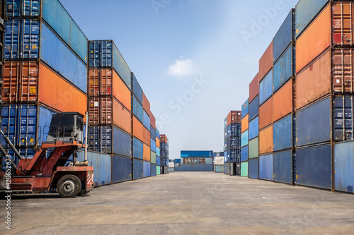 Stack of blue containers box. Cargo Freight Shipping of Container Logistics Industry concept.
