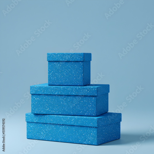 Stack of Blue Gift Boxes with White Dots: Minimalist Product Presentation