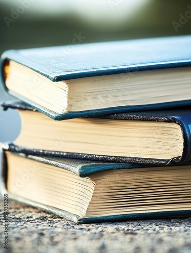 Stack of Books with Thick Spines on a Textured Surface Outdoors