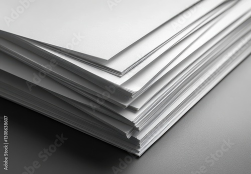 Stack of Clean White Paper Sheets in Perspective with Soft Lighting on a Dark Surface Suitable for Office, Art, or Design Applications