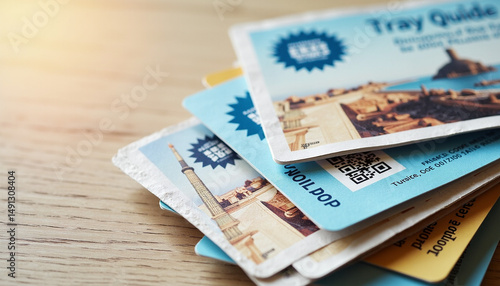 Stack of Colorful Credit and Debit Cards on Wooden Table