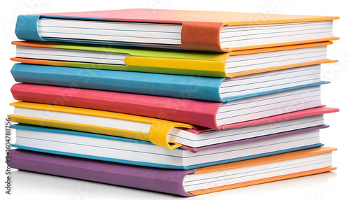 Stack of Colorful Notebooks with Bright Covers and Spiral Binding on White Background