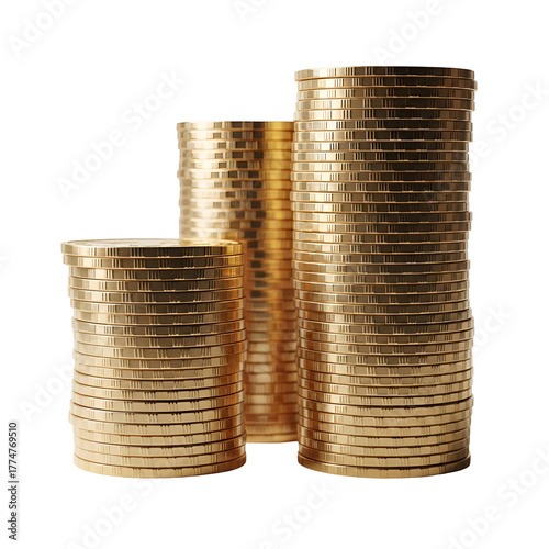 Stack of gold coins isolated on transparent background