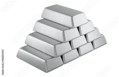 Stack of metallic ingots, silver color. 3D rendering