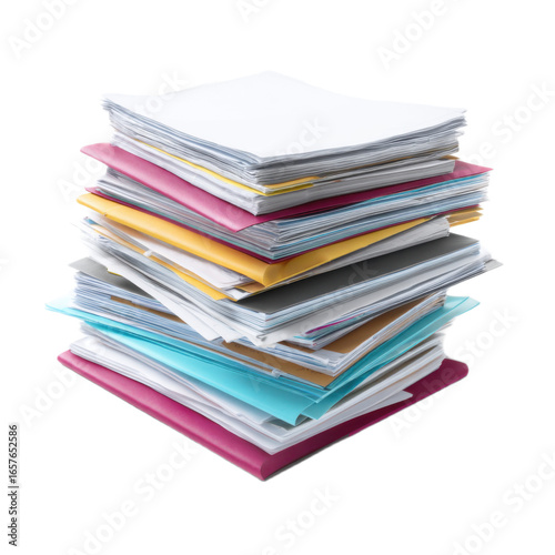 Stack of papers with a blue one on top