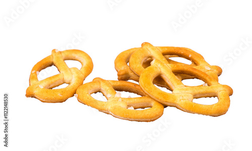 Stack of pretzels isolated on white background. Salted Crunchy snack food