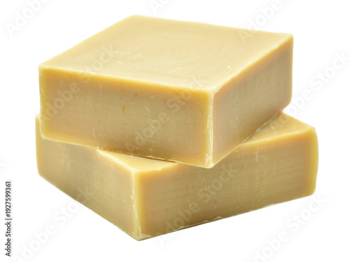 Stack of two bars of soap yellow soap bathroom hygiene isolated on a transparent background