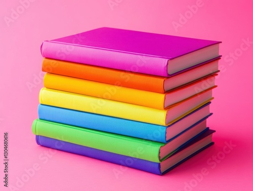 Stack of Vibrant Books on Pink Backdrop Showcasing Education Knowledge and Colorful Learning Material