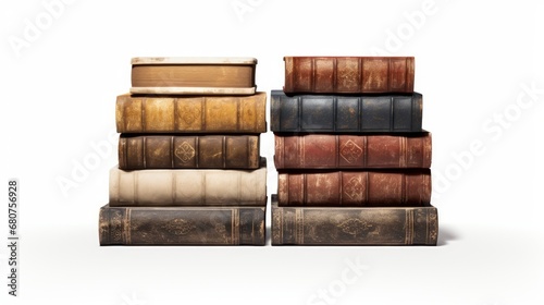 stacked books with antique bindings isolated on a white stand AI generated illustration