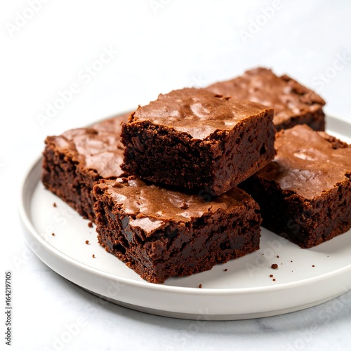 Stacked brownies on a plate