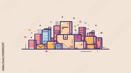 Stacked Cardboard Boxes Icon for Delivery Logistics Isolated on White Background