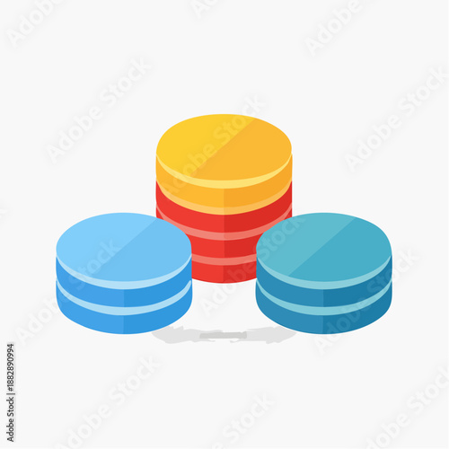 Stacked disk icons. Colorful disk shapes. Vector illustration of disk symbols. Disk stack. Color disk icons. Disk set. Simple disk graphics. White background.