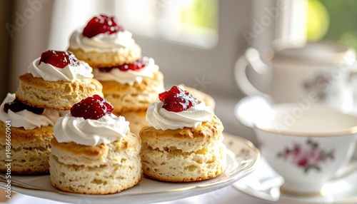 Stacked Scones With Whipped Cream And Jam