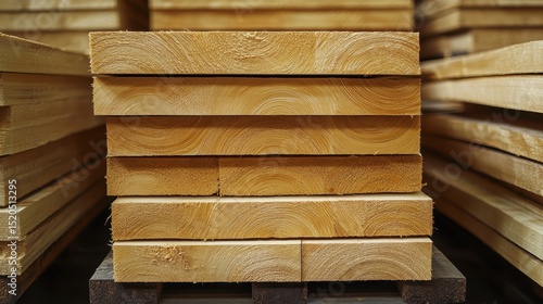 Stacked Wooden Planks in a Warehouse Environment for Carpentry Use