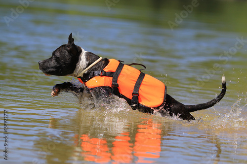 Staffordshire bull terrier diving