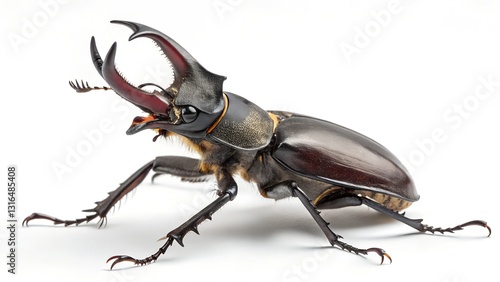 Stag Beetle's Close-up: A detailed, macro shot of a majestic stag beetle showcases its impressive mandibles and intricate exoskeleton, with the beetle set against a clean backdrop.