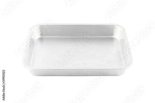 Stainless rectangle food plate on white background.