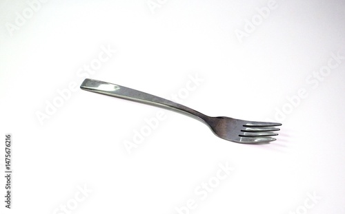 Stainless steel fork isolated on white background, simple cutlery design for kitchen, dining, and restaurant use.