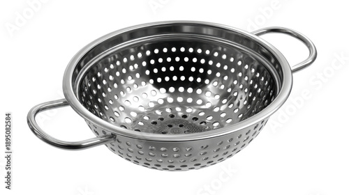 Stainless steel kitchen colander strainer cookware utensil for washing vegetables pasta cooking household equipment isolated shiny object on white background