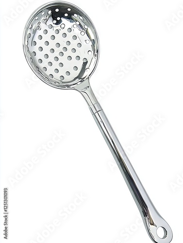 Stainless steel slotted spoon, kitchen utensil, cooking tool, food preparation, white background