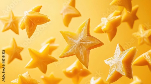 Star Fruit: Golden Slices in Air, Yellow Background