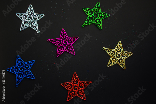 star ornament on black background Christmas theme. soft focus.