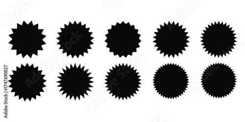 starburst, star, shape, burst, explosion, jagged, sharp, points, graphic, design, element, icon, symbol, black, white background, isolated, set, collection, badge, label, award, sale, discount, sun, r