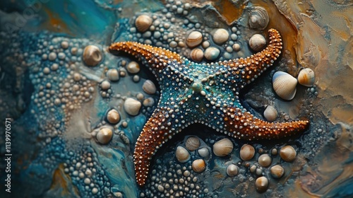 Starfish and Seashells in a Blue Ocean Setting