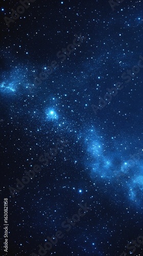Starry sky background, blue night sky full of stars, glowing stars in the dark space, starry background, dark night, stars in the distance, starlight, dark background with a blue glow, night sky.