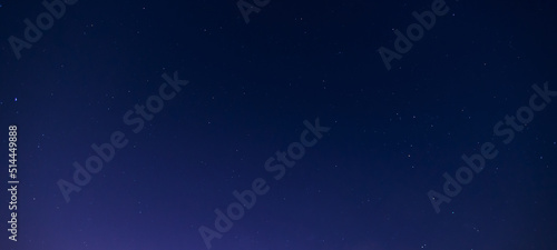 Blue night panorama, milky way sky and stars on dark background, universe full of stars, nebula and galaxies.