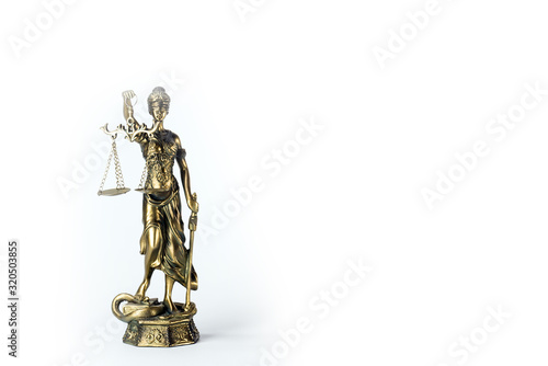 Statue of justice. Law and justice concept. White background with copy space.