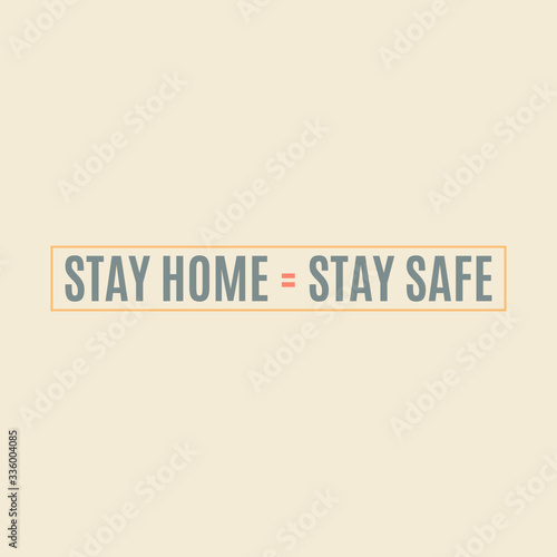 STAY HOME=STAY SAFE text label. Corona Virus 2019 - nCOV. Lettering for the quarantine period of the coronavirus pandemic. Work from home. Vector outline.