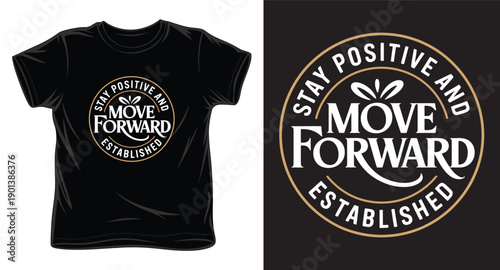 Stay positive move forward vintage circle badge t-shirt print with elegant script and decorative frame