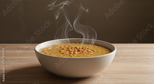Steaming bowl of lentil soup with chickpeas exuding warmth and comfort, symbolizing traditional meals during Ramadan